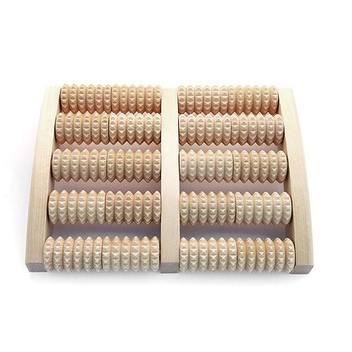 Появление изделий из дерева вызвано желанием людей пользоваться натуральными, экологически чистыми и безопасными товарами. Оригинальный дизайн изделий и близость тепла берёзы помогут вам зарядиться положительными эмоциями. На ступне человека расположено около 70 тысяч нервных окончаний, которые образуют рефлекторные зоны, связанные с определенными внутренними органами. При массаже таких зон происходит воздействие на соответствующие органы человека, после которого наблюдается активизация защитных функций организма. Деревянный массажер для стоп позволяет самостоятельно проводить несложный массаж ступней, не требуя для этого специальных навыков. Техника массажа: Сядьте на стул. Босые ноги поставьте на деревянный массажер, находящийся на полу. Прокатывайте по роликам босые ступни от кончиков пальцев до пятки и обратно, прорабатывая рефлекторные зоны. Продолжительность — 5 минут. Внешние и внутренние ребра стопы массируйте аналогично.